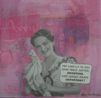 True places . . . 5" x 7" . . . commissioned pig . . .4" x 4" . . . sold Another Swell Lunch! . . . 4" x 4" . . . sold Oasis . . . 4" x 4" . . . sold Work is for the birds . . . 6" x 6" . . . sold Bringing Christmas Cheer . . . 16" x 12". . . sold The Nation Enters the Modern World II . . . 8" x 8" . . . sold Best Coffee Ever . . . 6" x 6" . . . sold The Big One . . . 8" x *' . . . Sold Baker . . . 4" x 4" . . . Sold meats in a can . . . 8" x 8" . . . Sold Eat Meat Drink Beer . . . 12" x 12" . . . Sold Pretty Biscuits . . . 4" x 4" . . . Sold Have You Tried ALCOHOL? . . . 6" x 6" . . . Sold Have fun at your own party . . . 4" x 4" . . . Sold Paint a pretty picture with make-up . . . 10" x 10" . . . Sold All kinds of women . . . 10" x 10" . . . Sold And so the saga starts! . . . 10" x 10" . . . Sold Diana Prince IS Wonder Woman . . . 10" x 10" . . . Sold Do you want a man to boss you? . . . 18" x 18" . . . Sold Size Does Matter . . . 8" x 8" . . . Sold She Had All The Answers . . . 24" x 24" . . . Sold MEAT . . . 4" x 4" . . . Sold The Nation Enters the Modern World . . . 24" x 24" . . . Sold She leads a double life . . . 10" x 10" . . . Sold He's got me baffled! . . . 12" x 12" . . . Sold cowboy . . . 7" x 5" . . . Sold Sanka  . . . 12" x 12" . . . Sold It's My Turn Now . . . 18" x 18" . . . Sold Wonder Woman . . . 8" x 8" For Good Taste . . . 8" x 8" . . . Sold Rinse with warm water, then cool . . . 5" x 5" . . . Sold Keeping Up woth Hollywood II . . . 8" x 8" . . . Sold Love . . . 14" x 11" . . . Commissioned Work Put away your Cook Book . . . 5"x5" . . . Sold Darn Tooth Brush Hurts My Gums! . . . 8" x 8" . . . Commissioned Work Dive In . . . 12" x 12" . . . Sold Play it cool . . . 10" x 10" . . . Sold These curves won my husband's heart . . .  18" x 18" . . . Sold When a Man COOKS! . . . 12" x 12" . . . Sold Your Summertime Need for MEAT . . . 18" x 18" . . . Sold I Found The Cause Of My Trouble . . . 10" x 10" . . . Sold Commissioned General Electric Christmas Art Print card . . . Original art on canvas measures 12" x 9" "Be Lovely to Love III" . . . featured in Secret Artworks 2014 "Your happy hour party" . . . featured in Secret Artworks 2014 "What's Cookin?" . . . featured in Secret Artworks 2014 Just Add Liquor . . . 4" x 4" . . . Sold Commissioned Collaged and Painted Conference Table . . . Threadline Studios, Chicago IL Commissioned Vintage Porch Chair . . . 14" x 11" Commissioned set of 3 travel pieces, 1 of 3 "Hawaii" Commissioned set of 3 travel pieces, 2 of 3 "Mount Zion National Park" Commissioned set of 3 travel pieces, 3 of 3 "New York CIty" Health Begins At Breakfast . . .  10" x 10" . . . Sold Admiral Duplex . . . 10" x 10" . . . Sold Can't a girl keep her own beauty secret? . . . 12" x 12" . . . Sold She leads a double life . . .  8" x 8" . . . Sold Tired? NO!  . . .   8" x 8" . . .  Sold Oh Boy! . . . 5" x 5" . . . Sold "A Pretty Face Starts At Your Feet" . . .  8" x 8" . . . Sold Untitled . . . 8" x 8" . . . Commissioned Work cooky . . . 5" x 7" . . . Sold telephone . . . 7" x 5" . . . Sold I'd like a dress just for fun . . . 8" x 8" . . . Commissioned Work I'll never hear the end of that awful cake . . . 5" x 5" . . . Sold Dweller on the Threshold . . . 10" x 10" . . . Commissioned Work, Featured on a beer label College girls . . . 10" x 10" . . . Sold Now I Can Enjoy Washday . . . 10" x 10" . . . Sold I need a hero . . . 10" x 10" . . . Sold Helpful Equipment . . . 8" x 8" . . . Sold 1946 PhilCo Refrigerator . . . 8" x 8" . . . Sold Quick n easy Breakfast Ideas for a Week! . . . 8" x 8" . . . Sold Dear, you like tools... Try a can opener . . .  8" x 8" . . . Sold Softer, smoother skin . . . 6" x 12" . . . Sold Luxury . . . 12" x 12" . . .  Sold How far should I go for a man . . . 18" x 18" . . . Sold Hotpoint . . . 10" x 10" . . . Sold bottles . . . 5" x 5" . . . Sold Come to where the flavor is . . . 10" x 10" . . .  Sold I wanted to pull her hair . . . 8" x 8" . . . Sold I can dream can't I? . . . 12" x 12" . . .  Sold Having a wonderful time . . . 12" x 12" . . . Sold Sure I can count . . . 5" x 7" . . . Sold Now Available in Harvest Gold . . . 8" x 16" . . . Sold Simple hospitality is back in style again . . . 10" x 10" . . . Sold Be lovely to love II . . . Not for sale The way to a man's heart . . . 12" x 12" . . . Sold FOOD! . . . 10" x 10" . . . Sold It'll all come out in the wash . . . 18" x 18" . . . Sold Joys of Jell-o . . . 5" x 5" . . . Sold General Electric . . . 10" x 10" . . . Sold fork . . . 5" x 7" . . . Sold knife . . . 5" x 7" . . . Sold spoon . . . 5" x 7" . . . Sold a smart, thrifty woman . . .  8" x 8" . . . Sold How do you handle a hungry man . . . 10" x 10" . . . Sold BACON! . . . 8" x 8" . . . Sold pie . . . 5" x 7" . . . Sold candy . . . 5" x 7" . . . Sold Friends wonder what I see in him! . . . 12" x 12" . . . Sold It's Dessert Time . . . 5" x 5" . . . Sold Be lovely to love . . . 24" x 24" . . . Sold Look your loveliest always . . .  12" x 12" . . . Sold meat . . . 5" x 7" . . . Sold Down through the chimney . . . 8" x 8" . . . Sold untitled . . . 10" x 10" . . . Commissioned Work bread . . . 7" x 5" . . . Sold Royal (refurbished) . . .  24" x 48" . . . Sold Get In Shape Girl . . . 12" x 12" . . . Sold Fresh As A Daisy . . . 12" x 12" . . .  Sold Attention Mall Shoppers . . . 30" x 40" . . . Commissioned Work man's best four wheeled friend . . . 8" x 8" . . . Sold How can anyone so cute be such a wow at cleaning?  . . . 8" x 8" . . . Sold Campbell's . . . 5" x 7" . . . Sold Be Thrifty But Be Clever Too . . . 12" x 12" . . . Sold Highjinks at the Circus . . . 14" x 14" . . . Commissioned Work COOKIES . . . 12" x 12" . . .  Sold MADISON . . . Commissioned Work untitled . . . 5" x 5" . . . Sold Shortest Recipe of all . . . 12" x 12" . . . Sold What'll you have? . . . Sold Big Buy . . . 12" x 12" . . . Sold Want to look fresh as a daisy? . . . 24" x 24" . . . Sold HIS . . . 24" x 24" . . . Sold Beer Belongs - Enjoy It . . . 8" x 8" . . . So